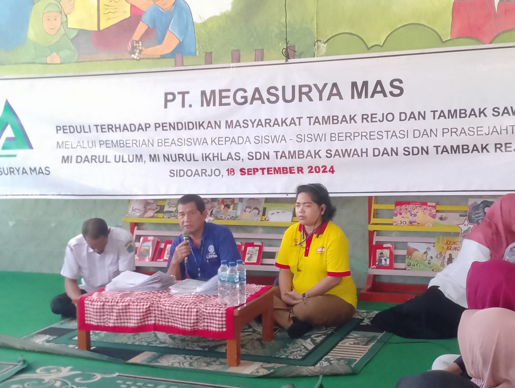 Menurut manajemen PT. Megasurya Mas, Rijono dalam sambutannya menyampaikan, pemberian Bea Siswa ini dilakukan sebagai wujud kepedulian PT. Megasurya Mas terhadap warga Desa Tambak Sawah dan Tambakrejo khususnya di bidang pendidikan dengan harapan atas pemberian Beasiswa ini bisa mewujudkan anak didik kita lebih termotivasi – lebih bersemangat untuk giat belajar sehingga akan tercipta Sumber Daya Manusia yang bermutu – cerdas – dan kompetitif.