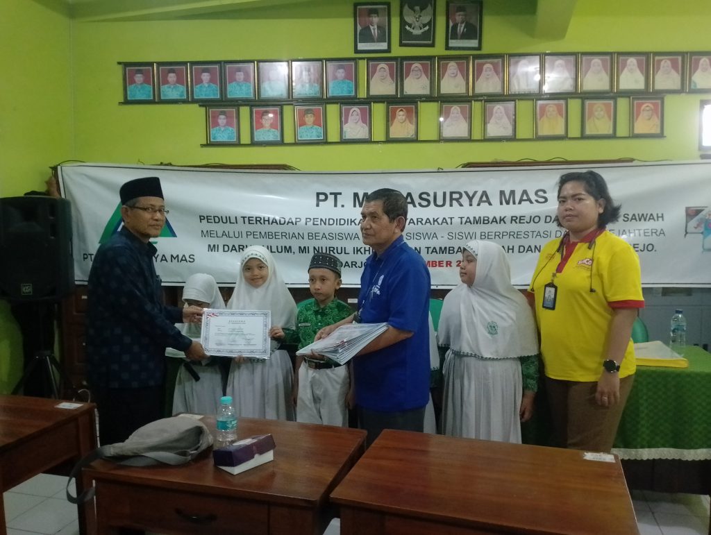 CSR dalam bidang pendidikan dengan cara Pemberian Beasiswa ini telah dilakukan oleh PT. Megasurya Mas sejak tahun 1994 sampai dengan sekarang. Pada tahun 2024 PT. Megasurya Mas memberikan Beasiswa kepada siswa-siswi di sekolah antara lain SDN Tambakrejo, SDN Tambak Sawah, MI Darul Ulum Tambakrejo dan MI Nurul Ikhlas Tambak Sawah yang berjumlah 356 siswa.