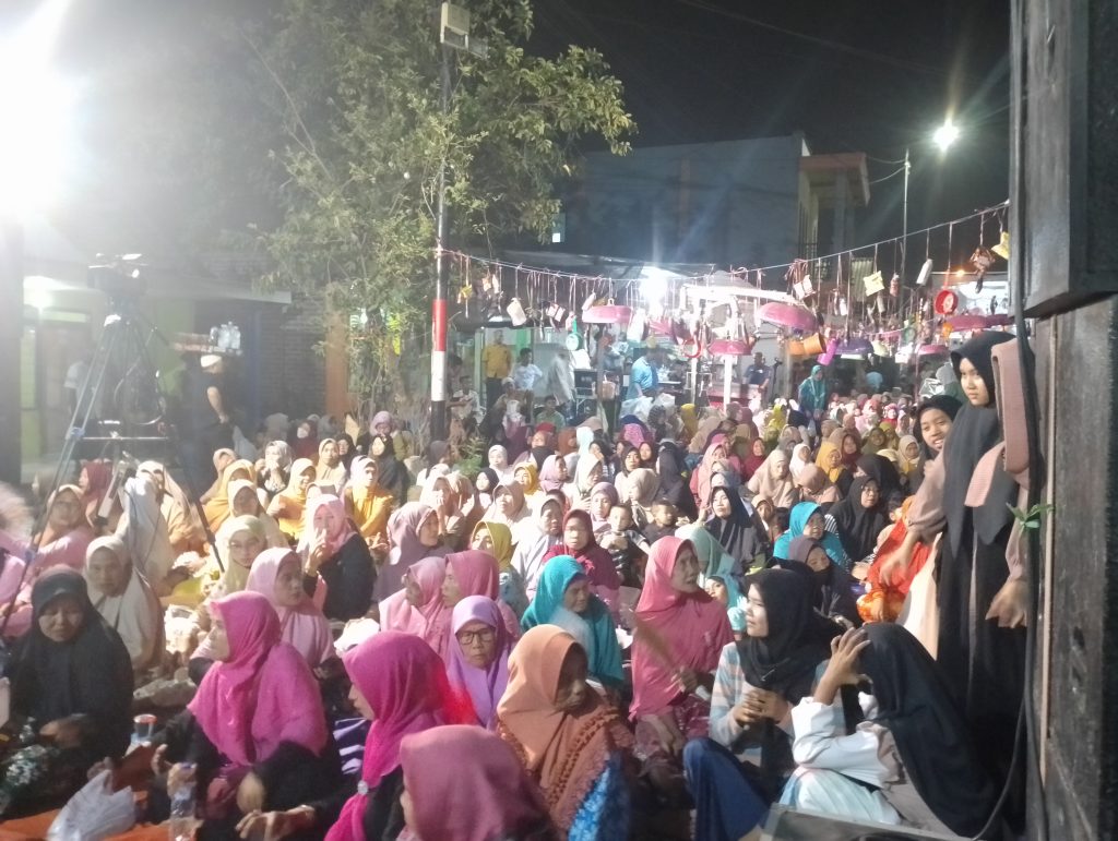 Setiap sudut ruang menggema dengan lantunan sholawat, sementara ribuan ibu-ibu khusyuk mengikuti acara. Suara musik sholawatan memecah keheningan desa, membawa kedamaian dalam setiap nada.Di tengah keramaian itu, hadir seorang sosok yang membuat suasana semakin hidup.