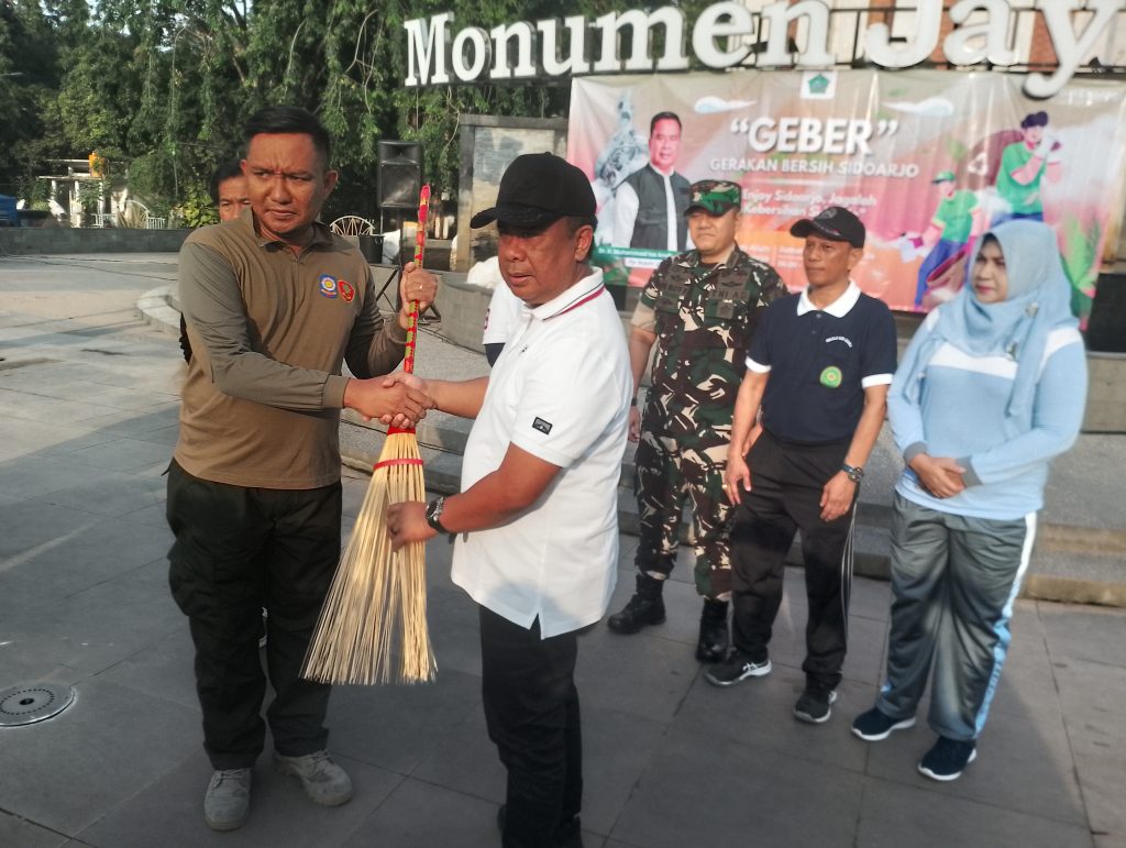 Kerja bakti massal itu dikomandoi Pjs Bupati Sidoarjo Dr. Ir. Muhammad Isa Anshori, A.TD., M.T. Ia ikut bergerak menyapu sampah di pedestrian Alun-alun Sidoarjo. Program Geber Sidoarjo merupakan inisiasinya menjaga kebersihan lingkungan Sidoarjo bersama ASN Sidoarjo dan seluruh masyarakat Sidoarjo.