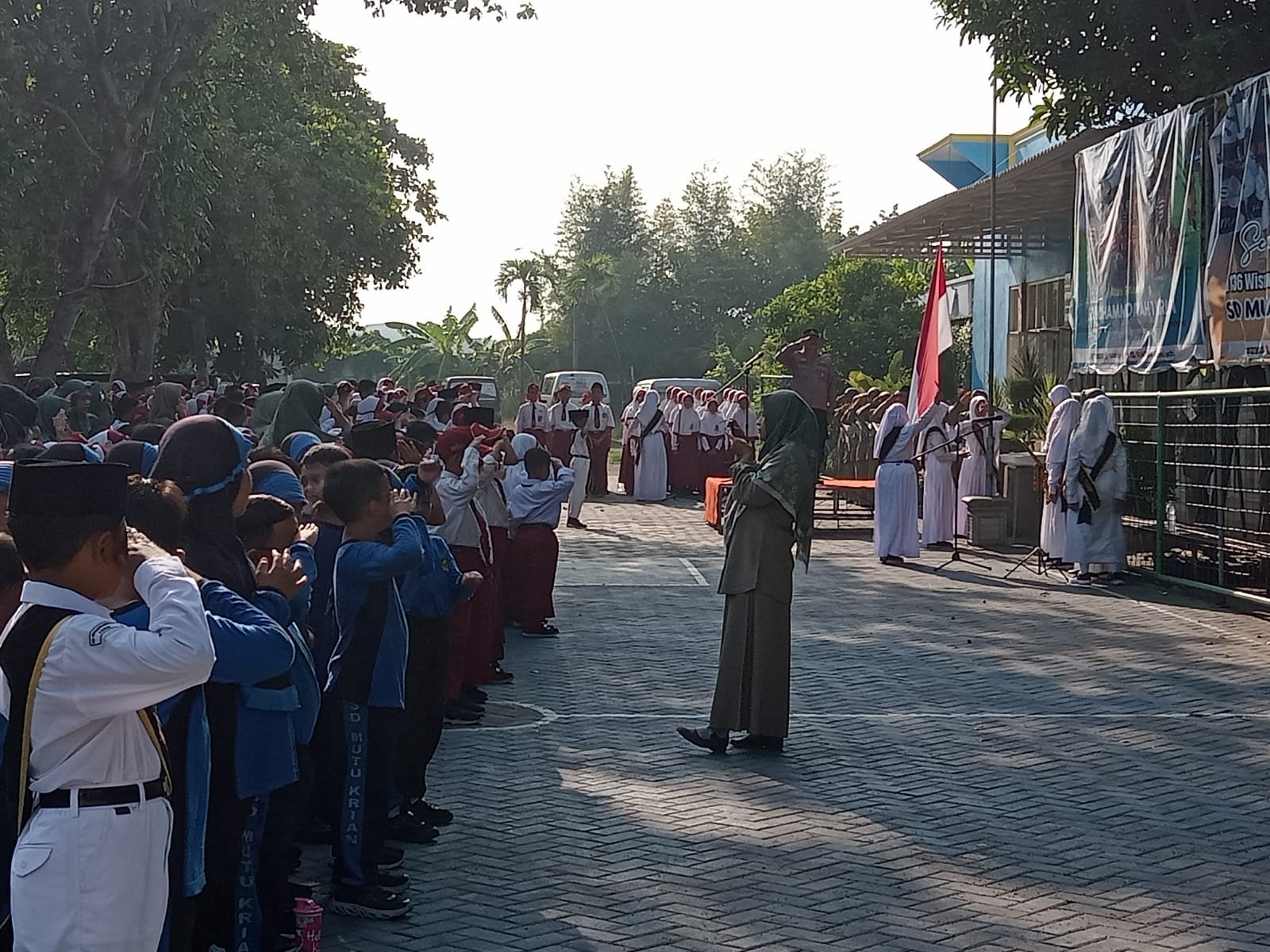 Zonajatim.com, Sidoarjo – Polsek Krian Polresta Sidoarjo memberikan edukasi bullying dan bijak penggunaan media sosial kepada pelajar, dalam kegiatan upacara bendera di SD Muhammadiyah 1, Krian, Sidoarjo, pada Senin (7/10/2024).