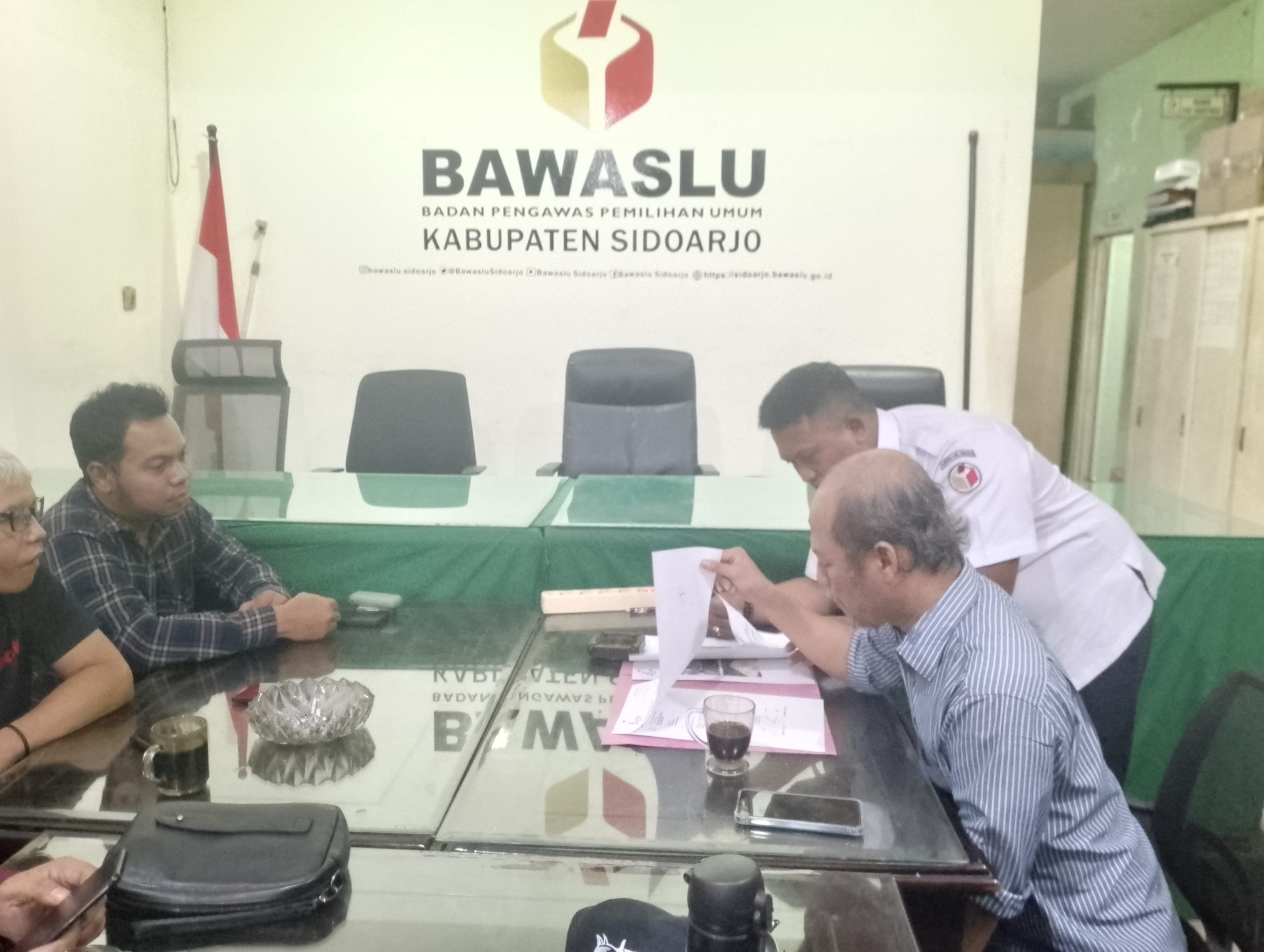 Juru bicara Pemenangan Subandi-Mimik, Nanang Haromain bersama Sujayadi menyerahkan barang bukti berupa gambar baliho yang diduga dirusak kepada Ketua Bawaslu Sidoarjo Agung Nugraha bersama Moeh Arief dan Fathur Rohman. “Ini pengaduan dan diskusi dengan Bawaslu. Karena titik kerusakan baliho itu diduga sengaja di rusak. Ada indikasi kesengajaan. Bukan faktor alam,” kata Nanang Haromain yang didampingi Sujayadi di Kantor Bawaslu Sidoarjo, Rabu (9/10/2024).