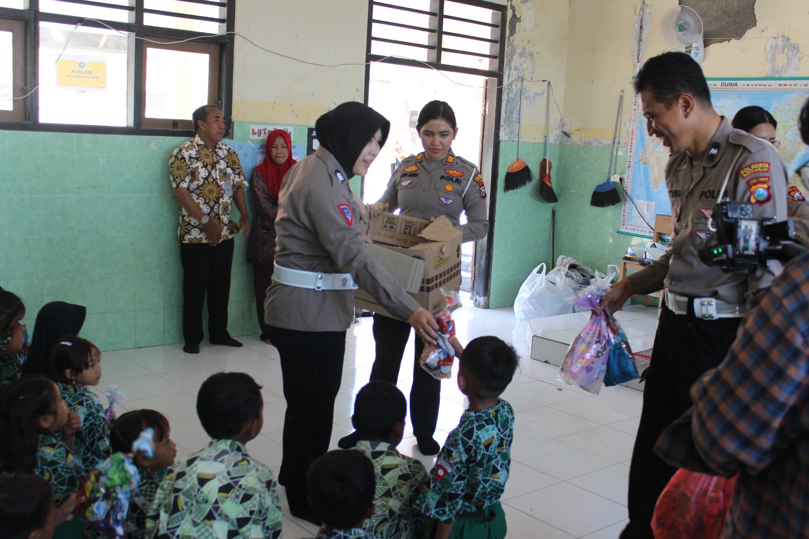 Datang di dusun yang masyarakatnya sebagian besar mata pencaharian sebagai pekerja tambak dan nelayan, anggota Unit Kamsel Satlantas Polresta Sidoarjo dipimpin AKP Latifa Andika langsung menemui siswa-siswi SDN 2 Sawohan dan SMPN Satu Atap Kepetingan.