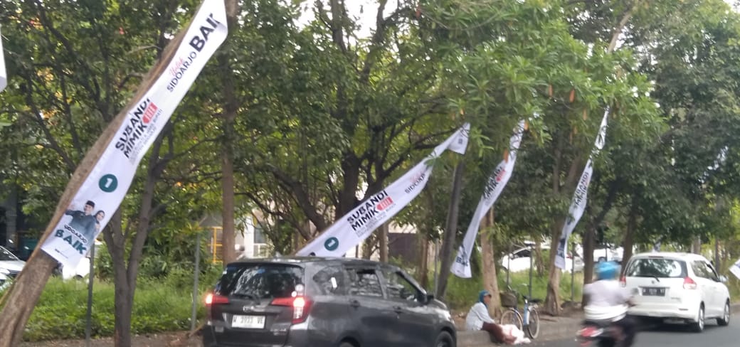 Saat ini pihak KPU Sidoarjo telah menyediakan 20 lembar umbul-umbul bagi masing-masing Paslon per kecamatan di seluruh wilayah Sidoarjo secara berdampingan.