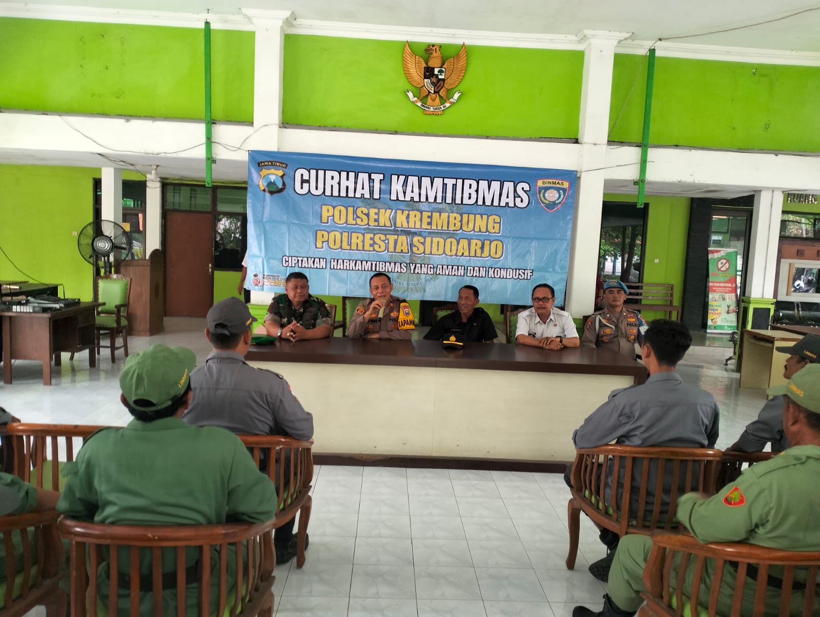 Zonajatim.com, Sidoarjo – Polsek Krembung mengadakan diskusi bersama perangkat desa, tokoh masyarakat dan warga, sebagai upaya mewujudkan situasi kamtibmas menjelang Pilkada serentak 2024 tetap aman dan kondusif.