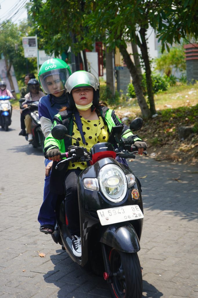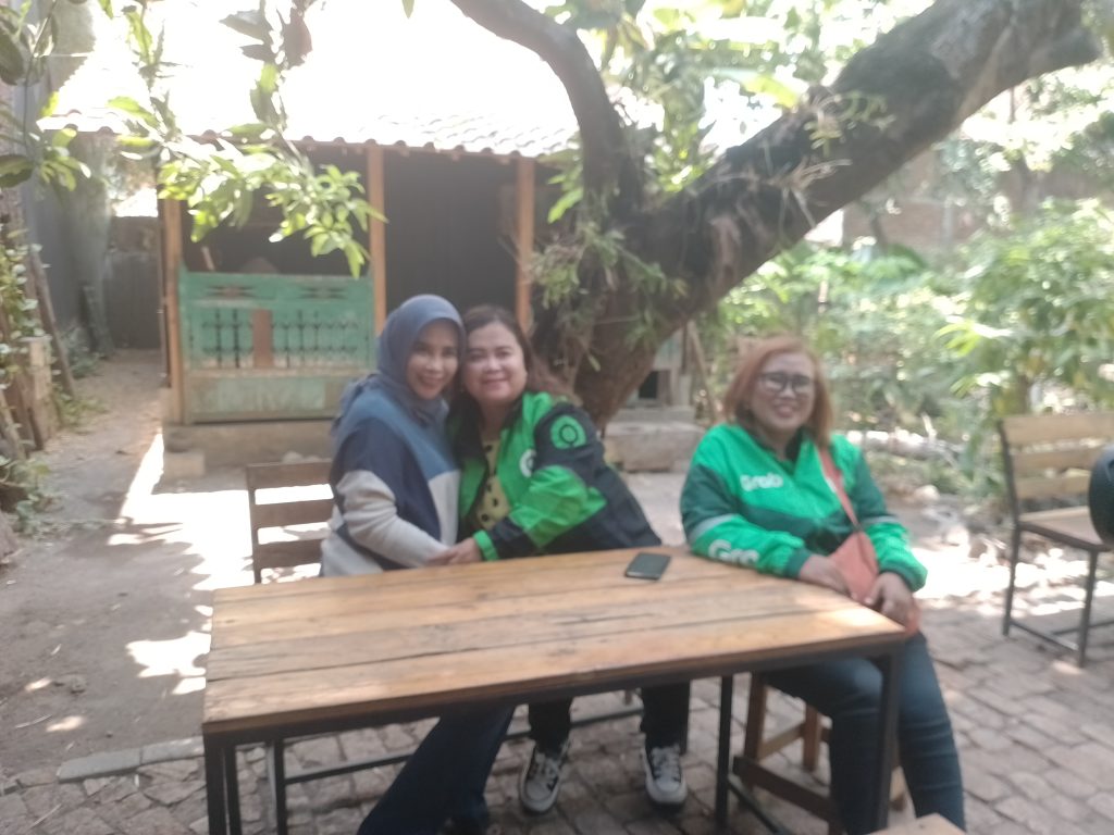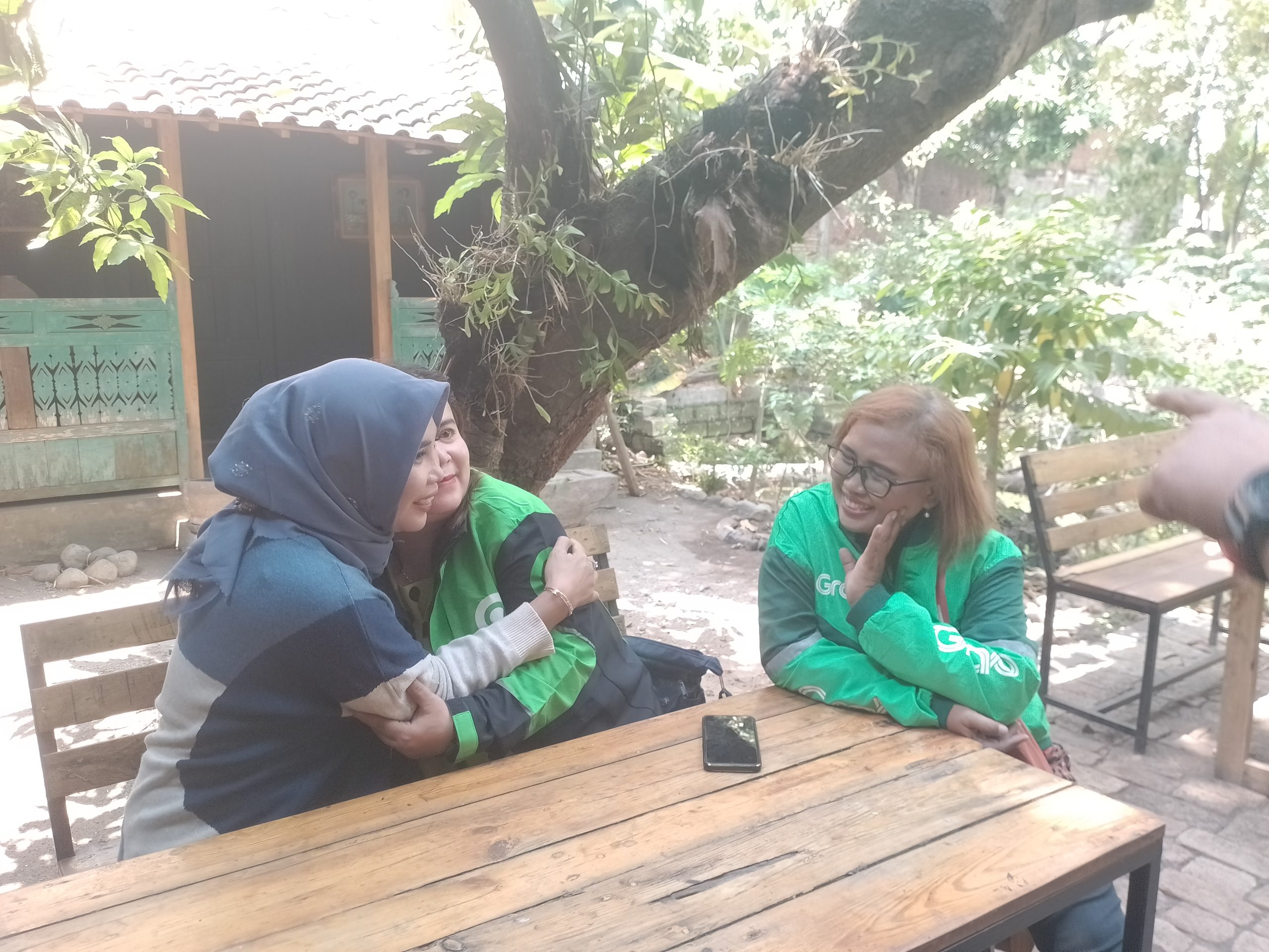 Dengan rasa aman, Bu Mimik pun duduk di boncengan. Selama perjalanan menuju Rumah Seni di Pecantingan, Sekardangan, keduanya hanya berbincang singkat karena ramai lalu lintas. Tapi begitu tiba di tujuan, Bu Mimik meminta Mbak Ul untuk duduk dan mengobrol sejenak, ditemani seorang teman sesama driver Gojek perempuan.