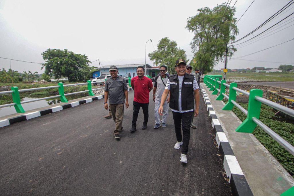 Zonajatim.com, Sidoarjo – Plt. Bupati Sidoarjo Subandi melakukan inspeksi mendadak (sidak) ke Jembatan Kedungpeluk di Kecamatan Candi pada Minggu (24/11). Jembatan baru pengganti jembatan yang patah dan ambruk pada Juli 2024 itu telah rampung. Aspal jalannya pun mulus.