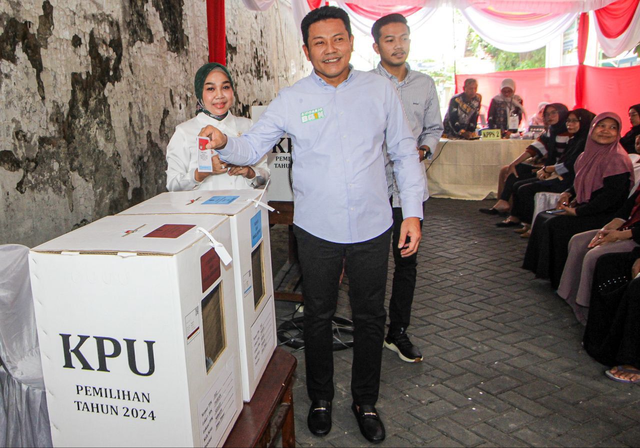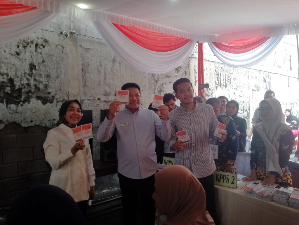 Sementara Cawabup Hj Mimik Idayana bersama suaminya H Rahmat Muhajirin dan anaknya menggunakan hak pilihnya di TPS 10 Perumahan AL Desa Kedungkendo Candi.
