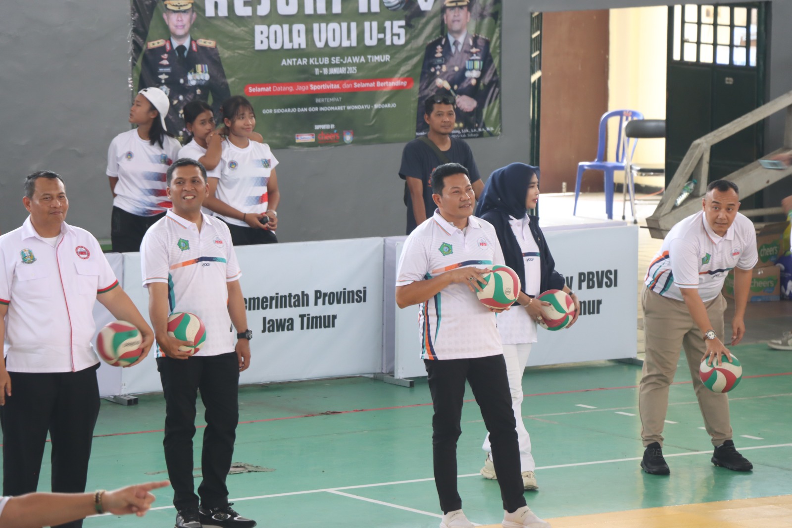 Zonajatim.com, Sidoarjo – Forkopimda Sidoarjo hadir bersama Ketua Harian Pengurus Bola Voli Seluruh Indonesia (PBVSI) Jatim Kombes Pol Dirmanto dan Kapolresta Sidoarjo Kombes Pol Christian Tobing membuka Kejuaraan Provinsi Jawa Timur Bola Voli antar klub U-15 se-Jatim, yang diadakan di GOR Sidoarjo, (11/1/2025).