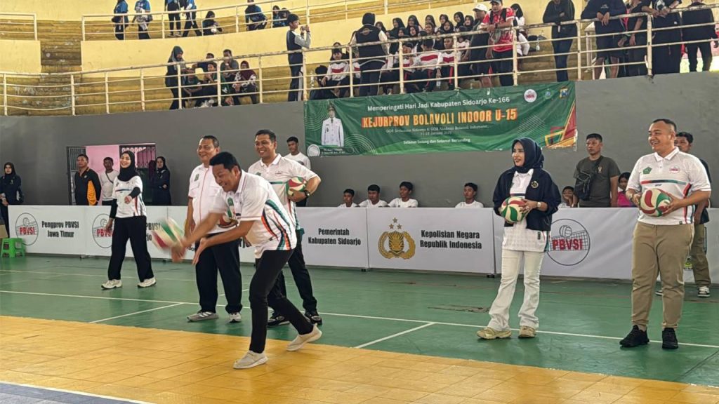 Zonajatim.com, Sidoarjo – Plt Bupati Sidoarjo Subandi bersama Forkopimda Sidoarjo resmi membuka Kejuaraan Provinsi Bola Voli U-15 yang digelar di GOR Indoor Sidoarjo, Sabtu (11/1/2025).