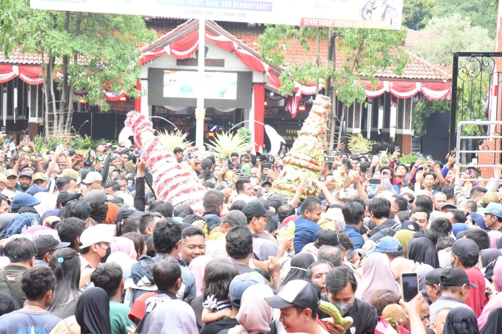 Warga Berebut Gunungan Sedekah Bumi Warnai Harjasda Sidoarjo ke-166