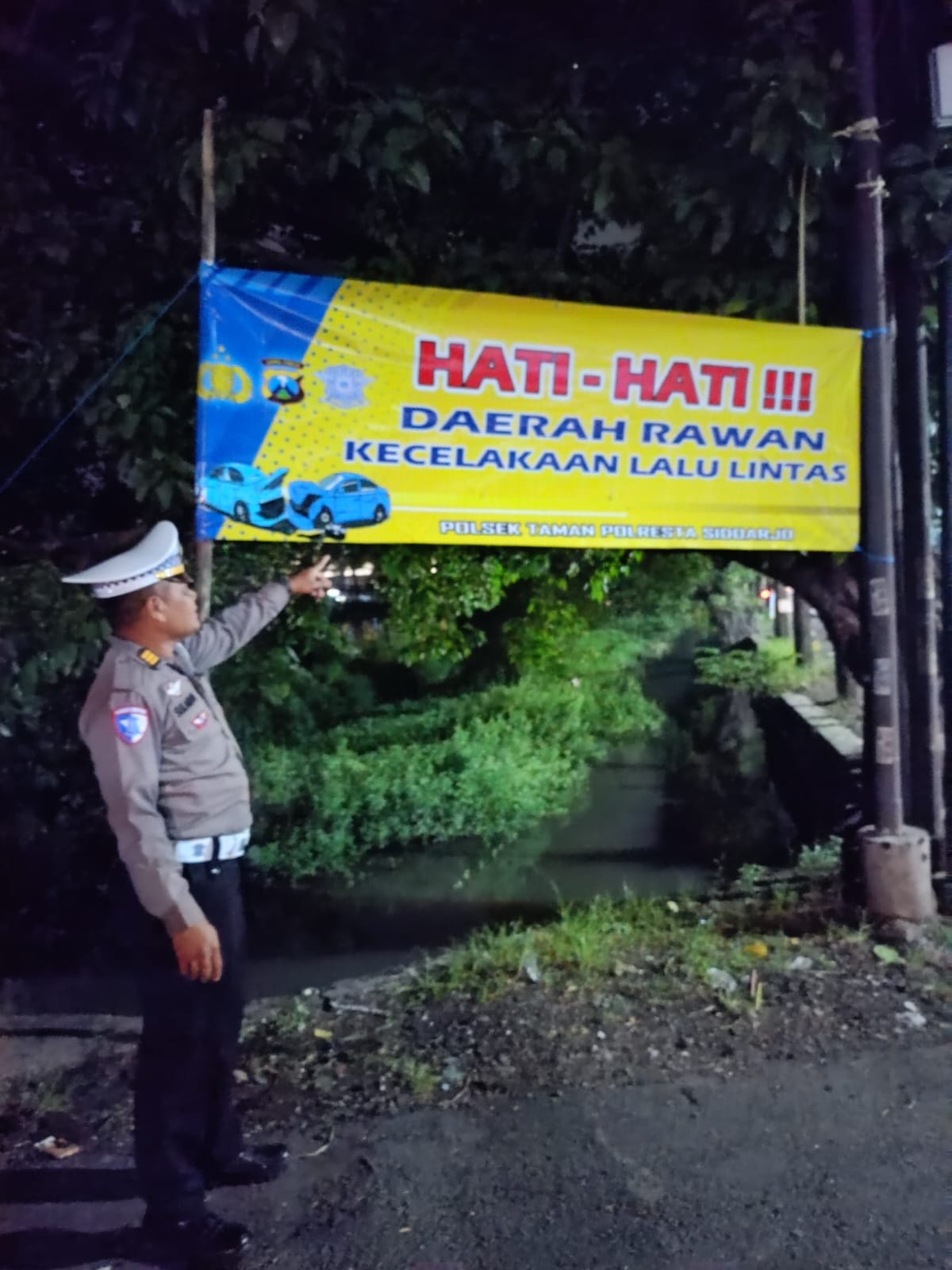 Seperti dilakukan Kanit Lantas Polsek Taman Polresta Sidoarjo AKP Sulaiman bersama anggota ILS Korcam Taman. Turun bersama memasang banner himbauan daerah rawan kecelakaan lalu lintas.”Pemasangan banner himbauan di Jalan Raya Trosobo merupakan jalur padat kendaraan dan rawan laka lantas. Tujuannya mengingatkan pengendara untuk selalu waspada dalam berkendara,” ujar AKP Sulaiman, Selasa (28/1/2025).