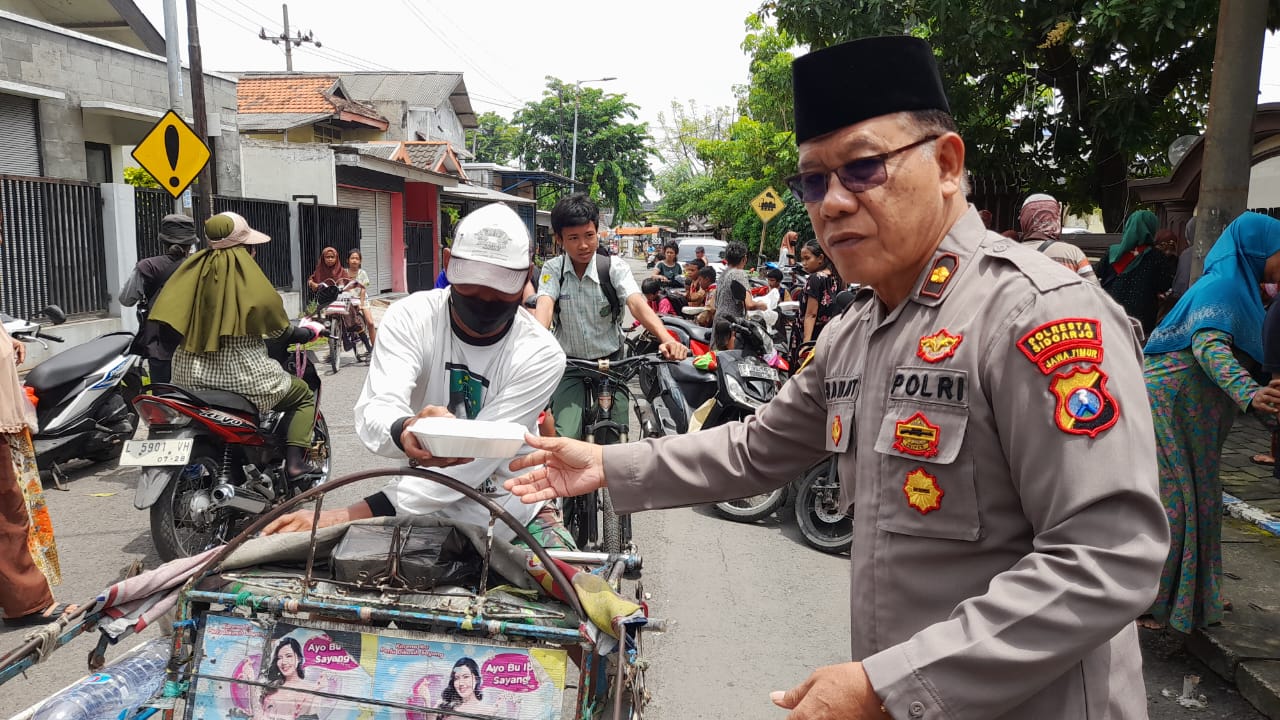 Turut membagikan nasi Jumat Berkah kepada masyarakat Kapolsek Taman Kompol Rochsulullah dan Wakapolsek Taman Kompol Samat. Ia menyampaikan kegiatan Jumat Berkah merupakan upaya yang dilakukan untuk membangun jiwa sosial kepada anggota.”Dari hasil swadaya anggota kita kumpulkan bersama, lalu kita rupakan aneka makanan untuk dibagikan ke masyarakat di Jumat Berkah,” ujar Kompol Rochsul.