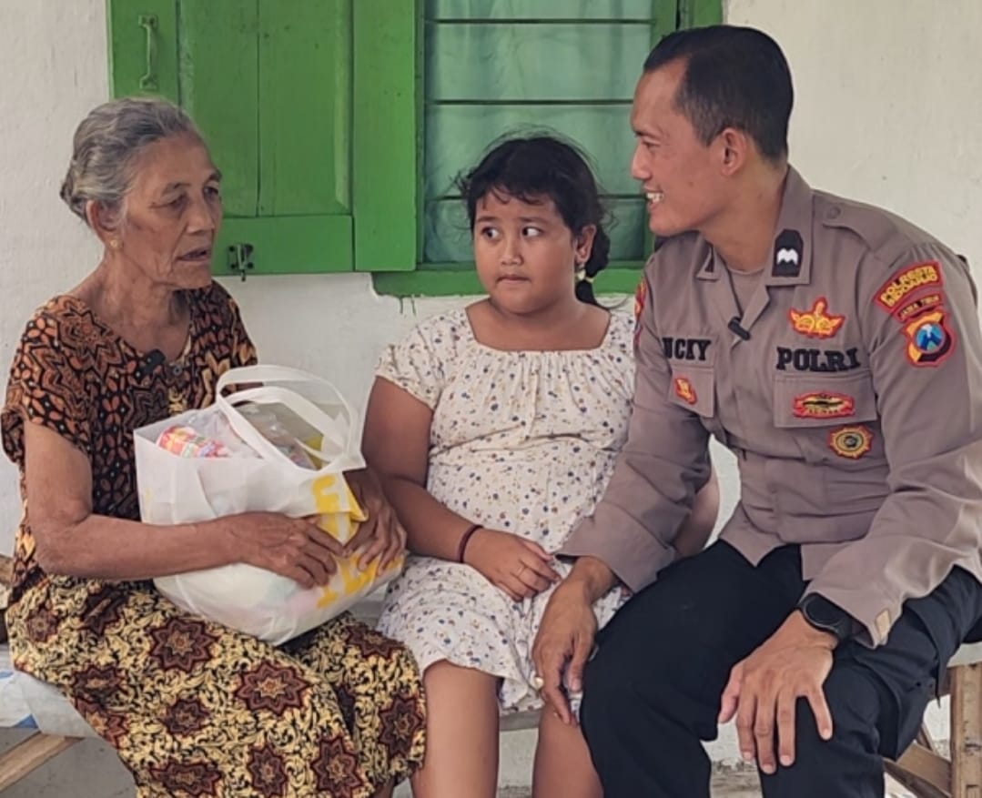 Aipda Lucky Ardian, yang mudah ringan tangan membantu warga, Kamis (20/2/2025), di tengah melaksanakan tugas tertuju ke sebuah rumah di Desa Kebaron, Kecamatan Tulangan. “Di sebuah rumah Desa Kebaron menurut informasi warga tinggal seorang nenek akrab disapa Mbah Kayuna, 72 tahun yang hidup sendirian. Kami datangi untuk bersilaturahmi dengan beliau dan memberikan bantuan sembako,” kata Aipda Lucky.