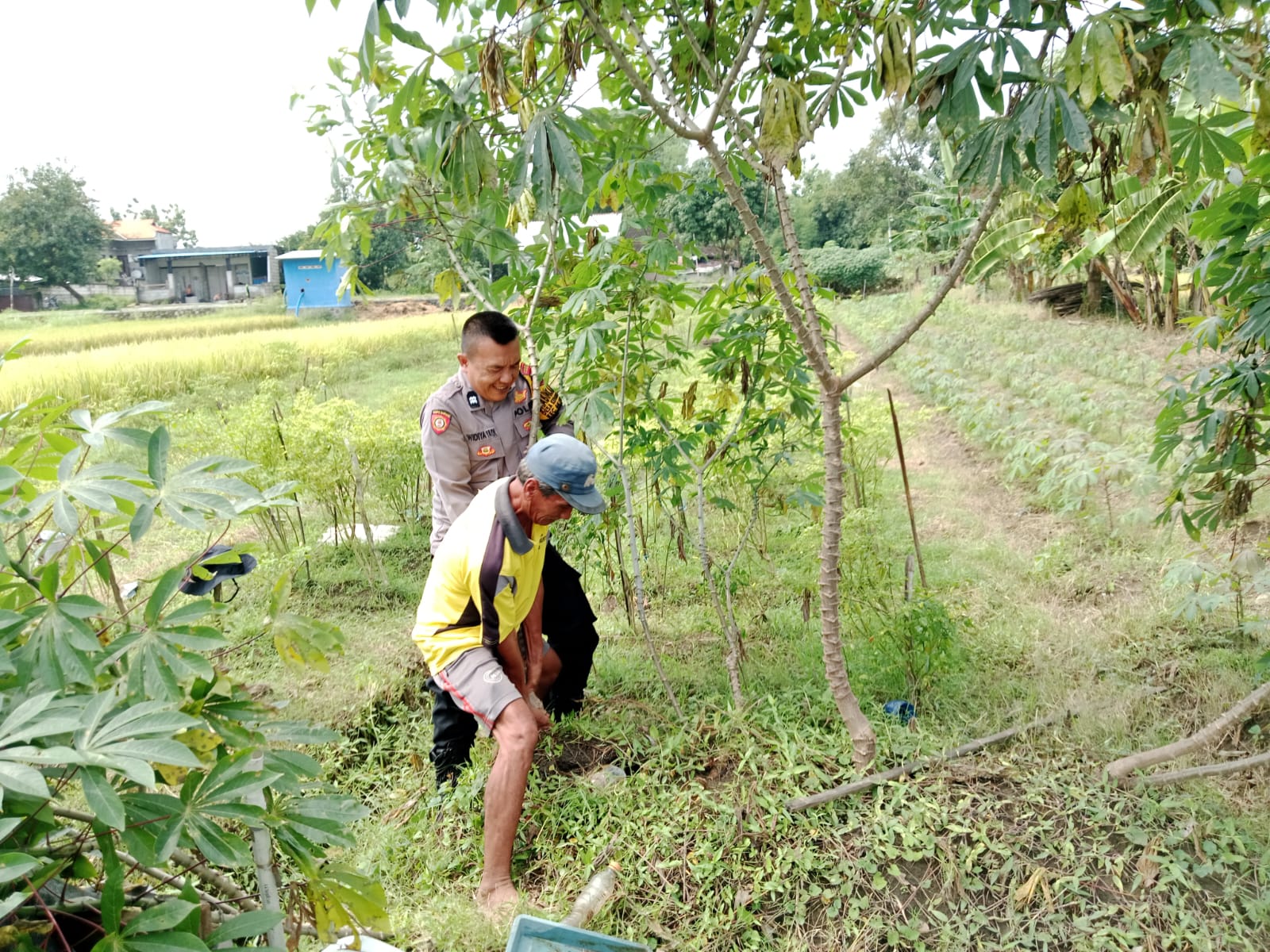 Mengetahui warga binaannya turut aktif mendukung program ketahanan pangan Polresta Sidoarjo, Kapolsek Balongbendo AKP Sugeng Sulistiyono melalui Bhabinkamtibmas Desa Kedungsukodani Polsek Balongbendo mengapresiasi dengan melakukan pendampingan pengelolahan pekarangan bergizi tanaman lombok dan terong.