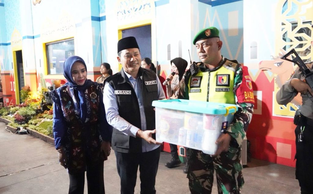 Bupati Subandi didampingi Wabup Hj Mimik Idayana serahkan bingkisan ke petugas keamanan