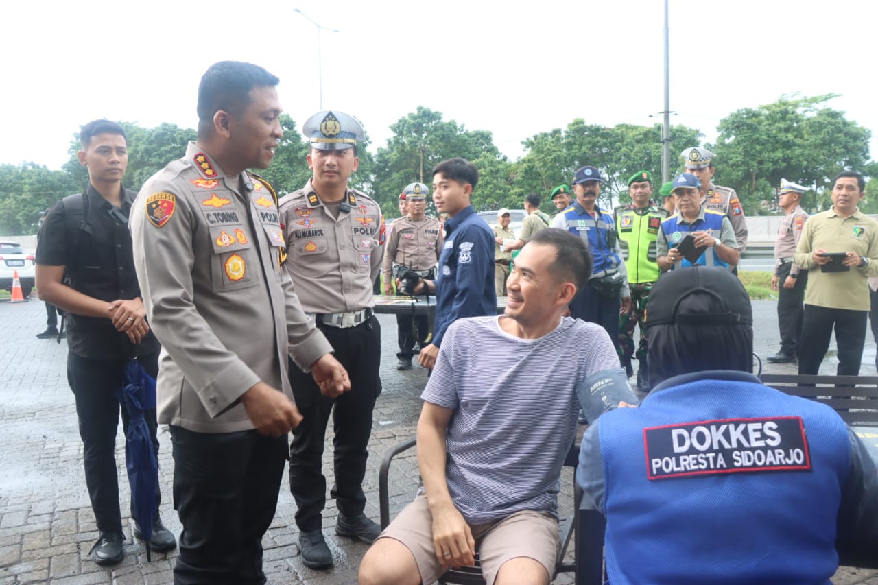 Zonajatim.com, Sidoarjo – Kapolresta Sidoarjo Kombes Pol Christian Tobing mengecek situasi arus balik lebaran Idul Fitri 2025 di Rest Area KM 753 Tol Sidoarjo, Kamis (3/4/2025) sore.