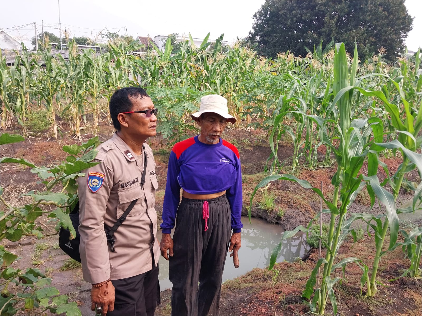 Bhabinkamtibmas Sidokare Tinjau Perkembangan Tanaman Jagung Bersama Petani