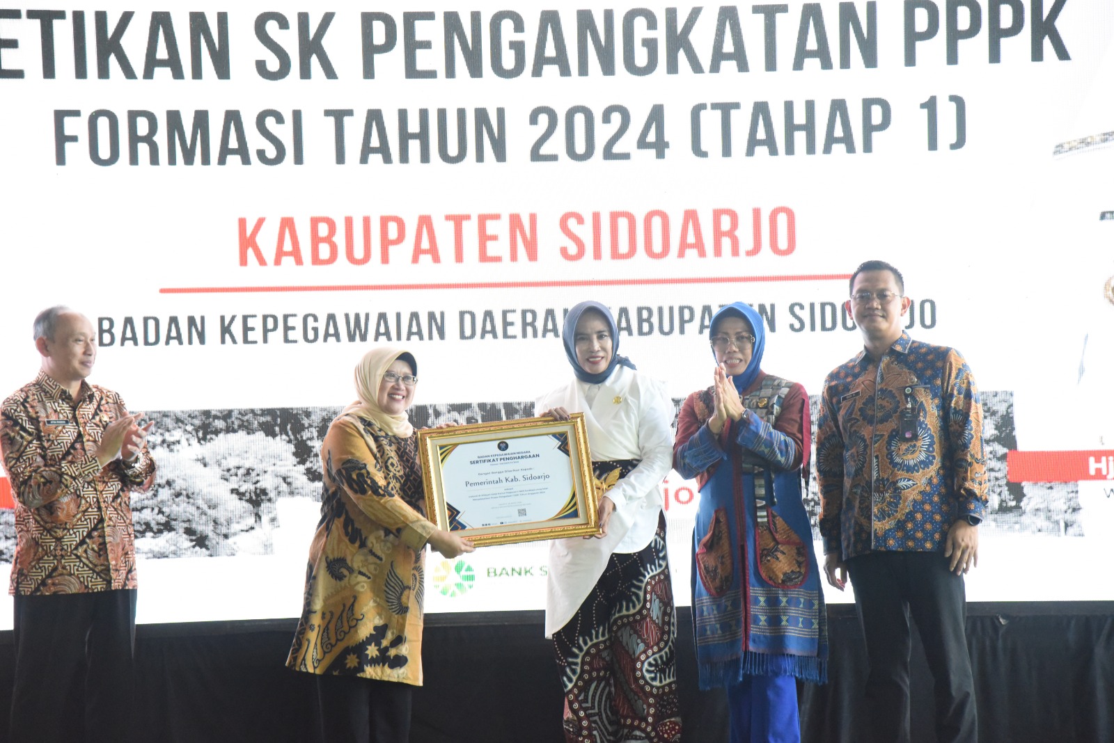 Pada Selasa (29/4), petikan SK tersebut diserahkan secara digital oleh Wakil Bupati Sidoarjo Hj Mimik Idayana di Jie Poek DW Resto Sidoarjo. Para ASN PPPK mengunduh SK pengangkatan masing-masing melalui aplikasi myasn.bkn.go.id.