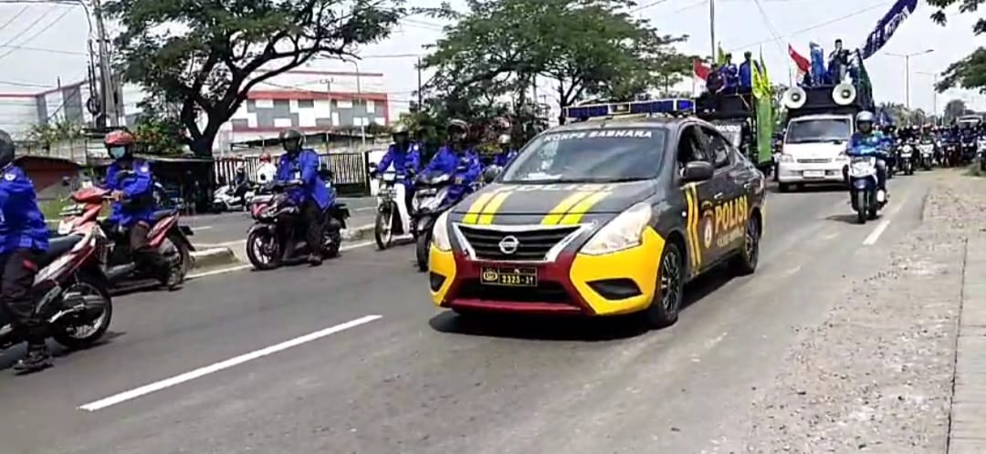 Kegiatan ini bertujuan untuk memastikan kelancaran dan keamanan konvoi buruh menuju titik aksi di Surabaya.