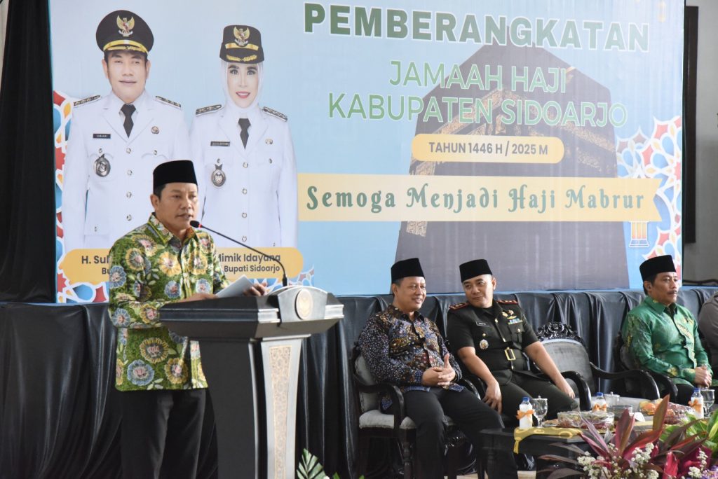Ia juga meminta kepada seluruh jamaah haji Sidoarjo untuk mendoakan Kabupaten Sidoarjo agar menjadi kabupaten Baldatun thayyibatun wa rabbun ghafur. Selain itu kepala daerahnya maupun pimpinan OPD nya diberi kelancaran dalam menjalankan tugasnya.“Kepada para jamaah haji kami memohon doanya untuk Kabupaten Sidoarjo. Pimpinan daerah, semua OPD diparingi kemudahan, kelancaran dalam menjalankan tugasnya sampai selesai,” ucapnya.