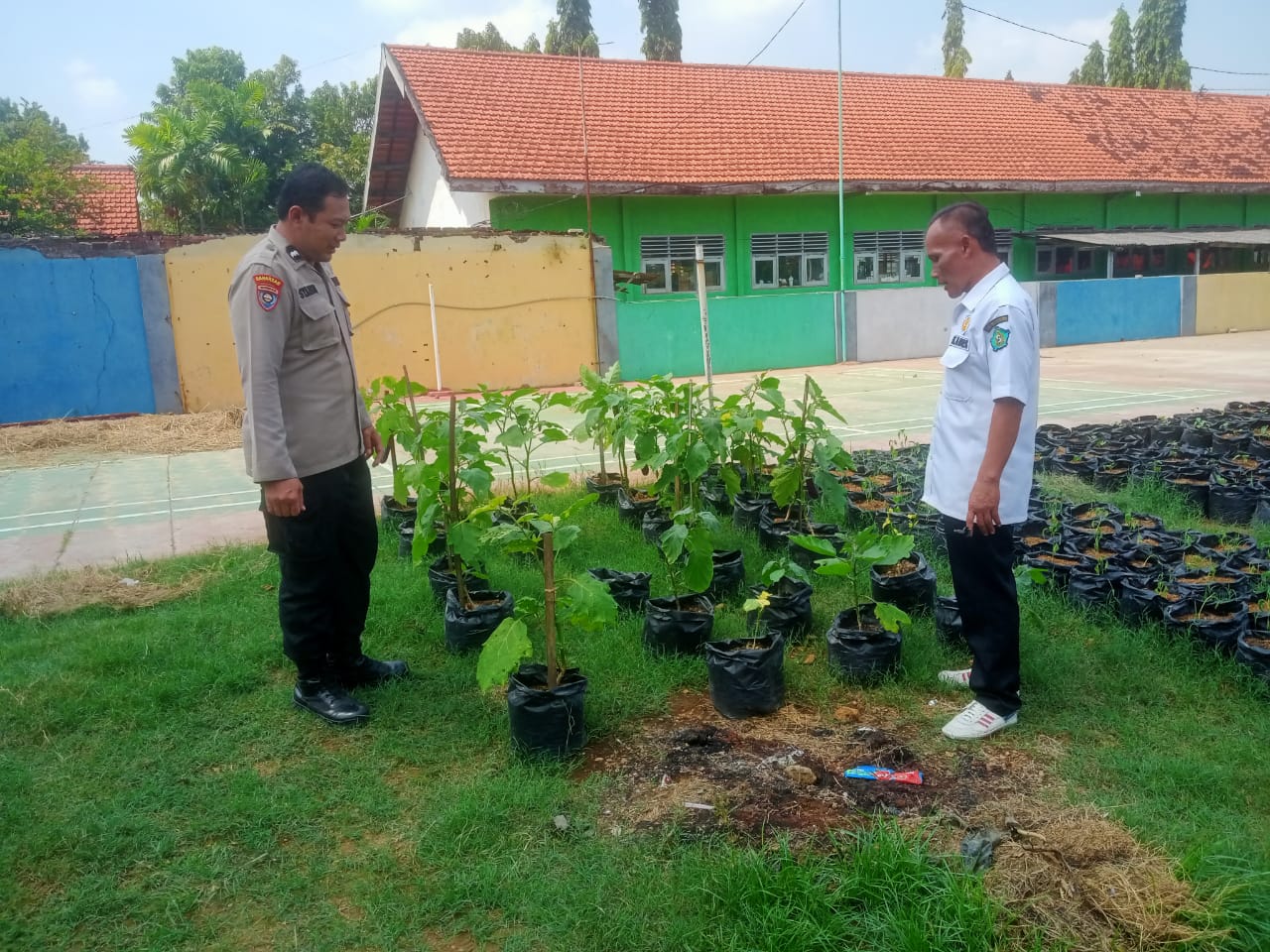 Bhabinkamtibmas dan Kades Lemujut memperbaiki ide dan gagasan untuk bercocok tanam holtikultura tanaman terong dll.