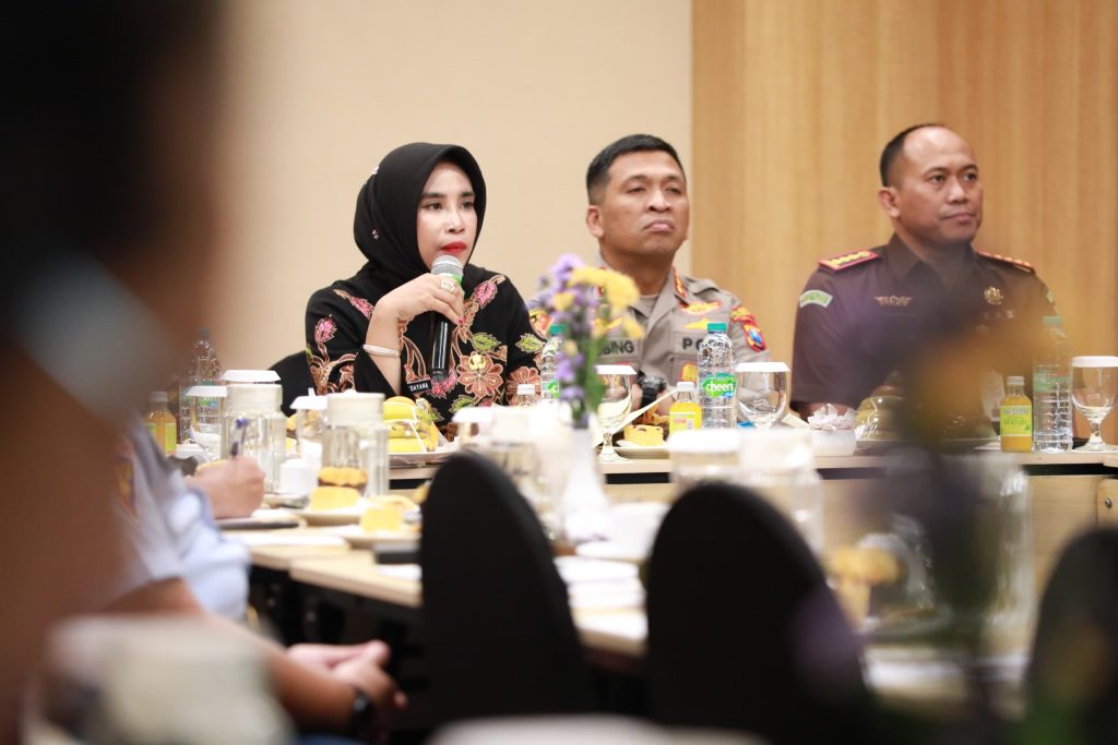 Wabup Hj Mimik Idayana saat beri paparan didampingi kapolresta dan Kajari