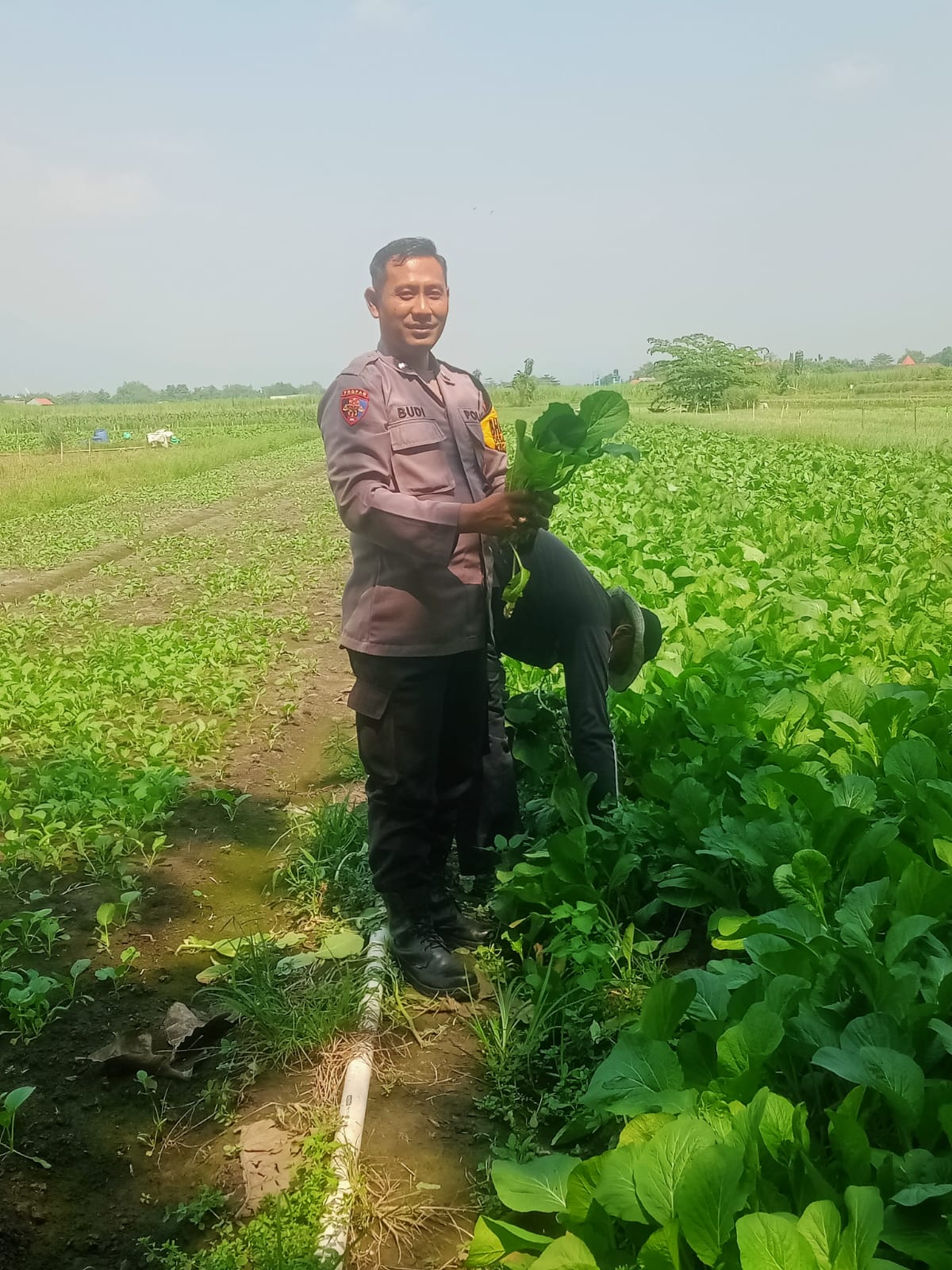 Pada Sabtu (28/6/2025), Kanit Binmas Polsek Krembung Aiptu Adin bersama Bhabinkamtibmas Desa Keret Aipda Budianto terjun langsung ke lahan pekarangan warga di Desa Keret, Kecamatan Krembung, untuk melakukan perawatan tanaman sawi bersama petani.