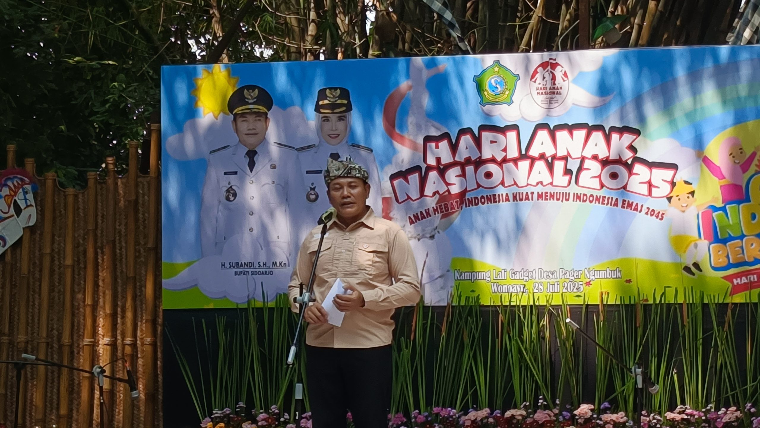 Penegasan itu disampaikan Bupati Subandi saat menghadiri peringatan Hari Anak Nasional di Kampung Lali Gadget Desa Pagerngumbuk kecamatan Wonoayu kabupaten Sidoarjo, Senin (28/7/2025).”Anak adalah masa depan bangsa. Kalau anak kita cerdas dan hebat, itu kebanggaan bagi keluarga, sekaligus kebanggaan bagi negara,” tegas Bupati Subandi.