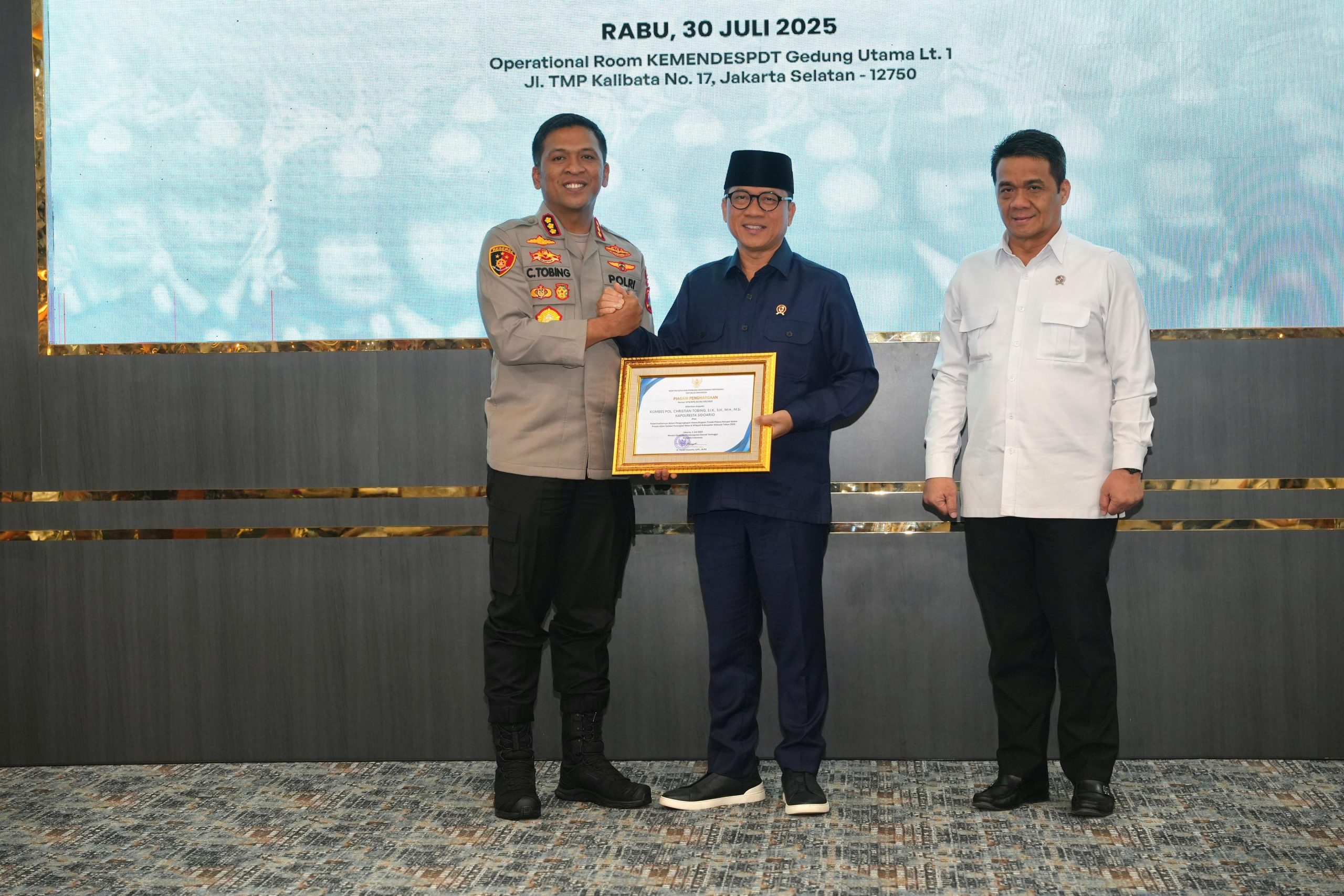 Penghargaan tersebut diberikan Mendes PDT Yandri Susanto, pada Rabu (30/7/2025), di kantor Kementerian Desa dan Pembangunan Daerah Tertinggal.