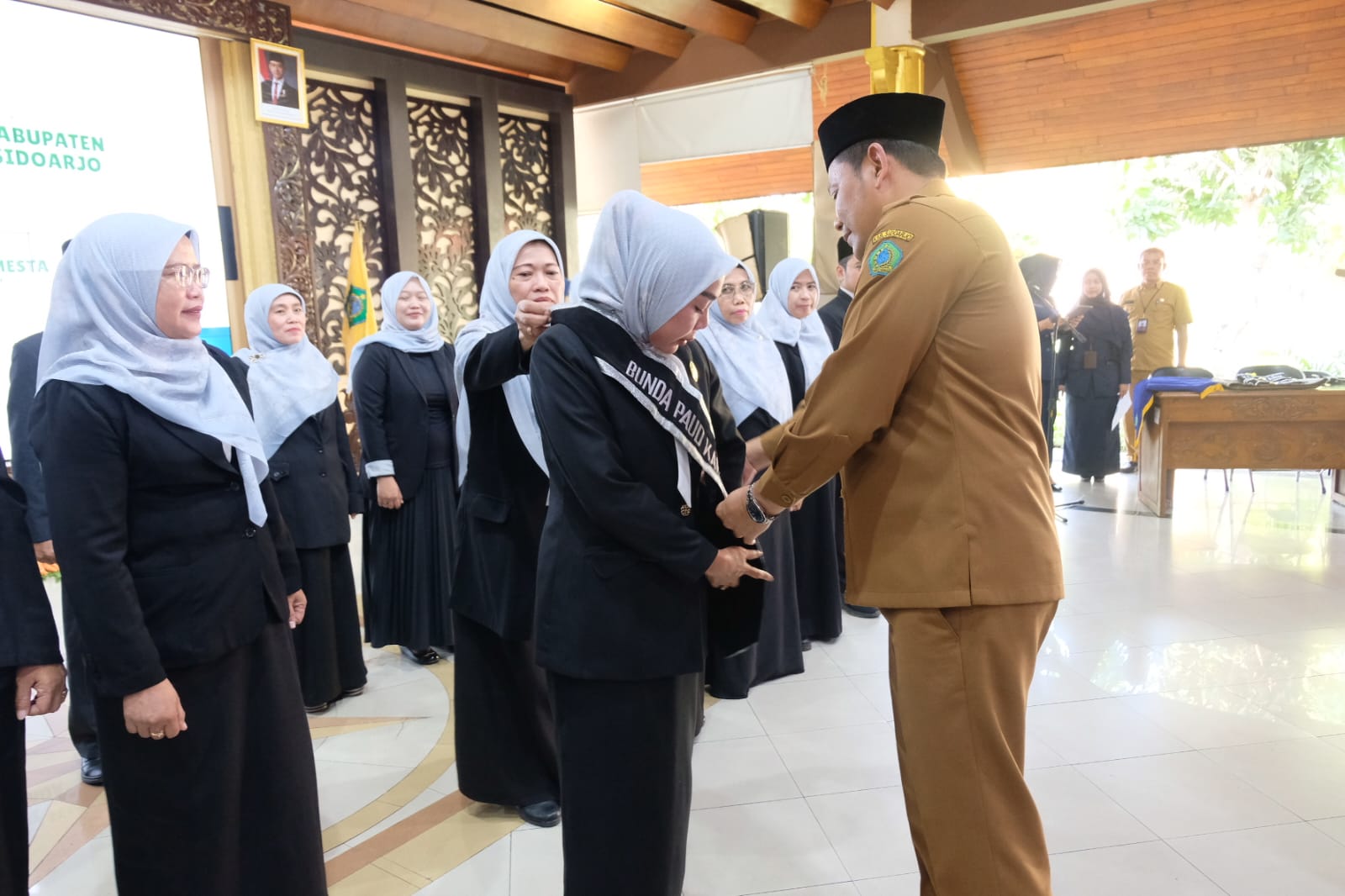 Zonajatim.com, Sidoarjo – Mengacu pada Perpres No. 60 Tahun 2013 tentang PAUD Holistik Integratif, Pemerintah Kabupaten Sidoarjo menetapkan serta mengukuhkan Bunda PAUD Kabupaten, Pokja Bunda PAUD Kabupaten oleh Bupati Sidoarjo H Subandi, SH., M.Kn., serta pengukuhan Bunda PAUD se-Kecamatan Sidoarjo oleh Bunda PAUD Kabupaten Sidoarjo dr. Hj. Sriatun Subandi di Pendopo Delta Wibawa, Senin (25/08/2025).
