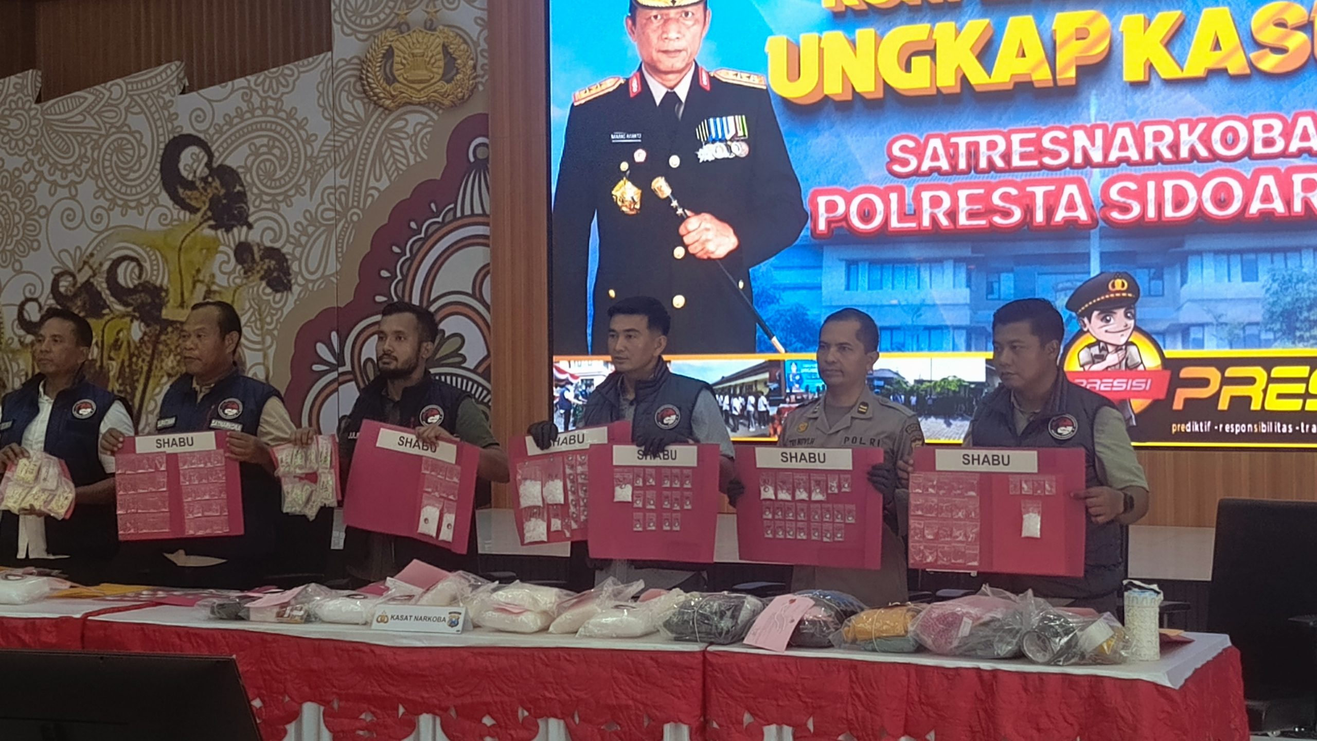 Hasil ungkap kasus tersebut disampaikan Kasat Resnarkoba Polresta Sidoarjo Kompol Riki Donaire Piliang bersama Kasi Humas Polresta Sidoarjo Iptu Tri Novi Handono pada wartawan, Selasa (21/10/2025) di Mapolresta Sidoarjo.
