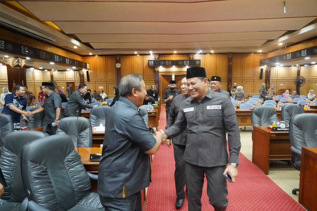 Bupati Subandi salami anggota DPRD Sidoarjo Anang Siswandoko dari Fraksi Gerindra