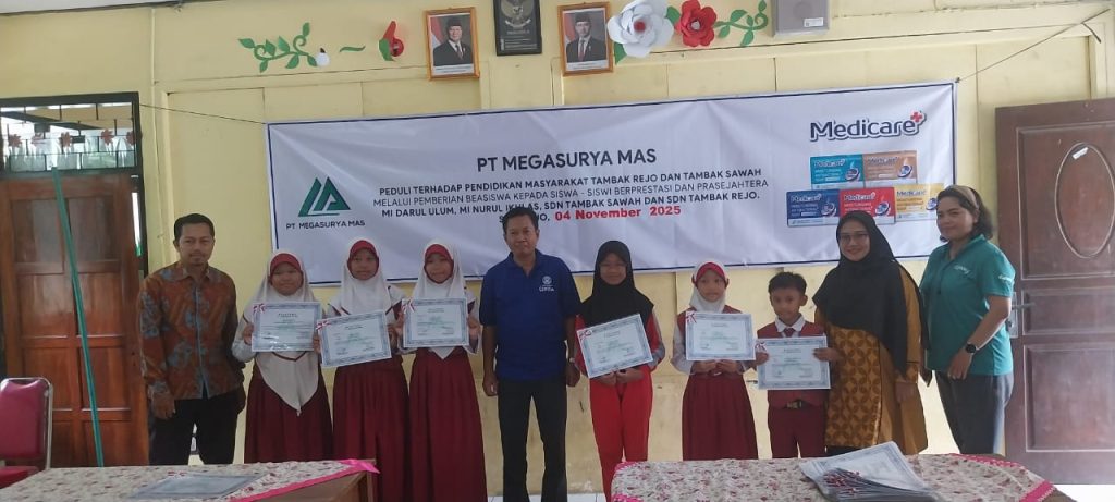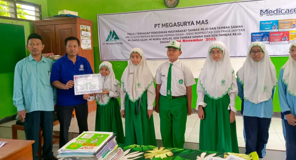 Zonajatim.com, Sidoarjo – Dalam rangka menyambut tahun ajaran baru tahun 2025/2026, PT. Megasurya Mas, memberikan bantuan beasiswa kepada siswa-siswi berprestasi, serta siswa-siswi prasejahtera untuk SDN Tambak Sawah, SDN Tambakrejo, MI Darul Ulum, MI Nurul Ikhlas yang berada di Wilayah Desa Tambak Sawah Kecamatan Waru dan Tambakrejo, Kecamatan Waru, Kabupaten Sidoarjo.