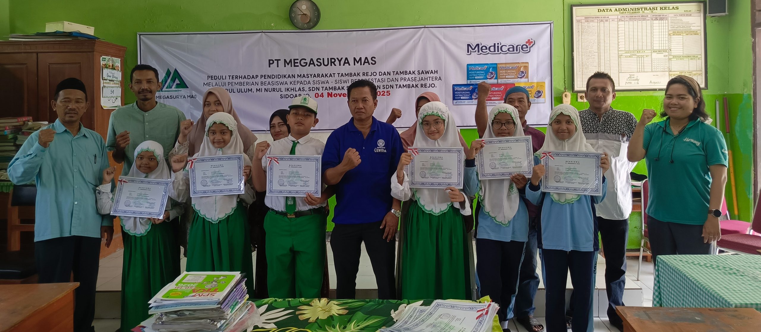 CSR dalam bidang pendidikan dengan cara Pemberian Beasiswa ini telah dilakukan oleh PT. Megasurya Mas sejak tahun 1994 sampai dengan sekarang.Pada tahun 2025 PT. Megasurya Mas memberikan beasiswa kepada siswa-siswi di sekolah antara lain SDN Tambakrejo, SDN Tambak Sawah, MI Darul Ulum Tambakrejo dan MI Nurul Ikhlas Tambak Sawah yang berjumlah 361 siswa.