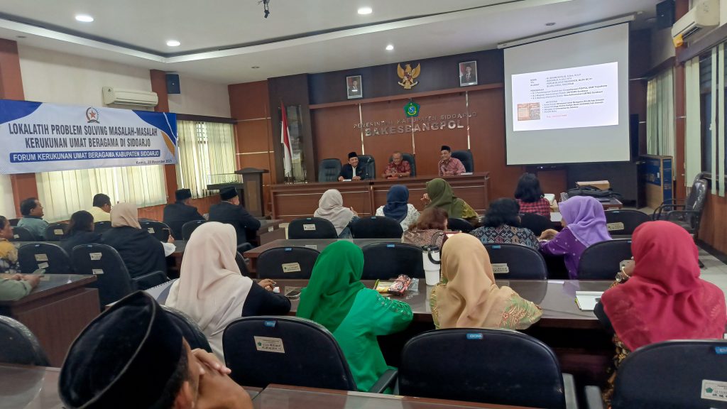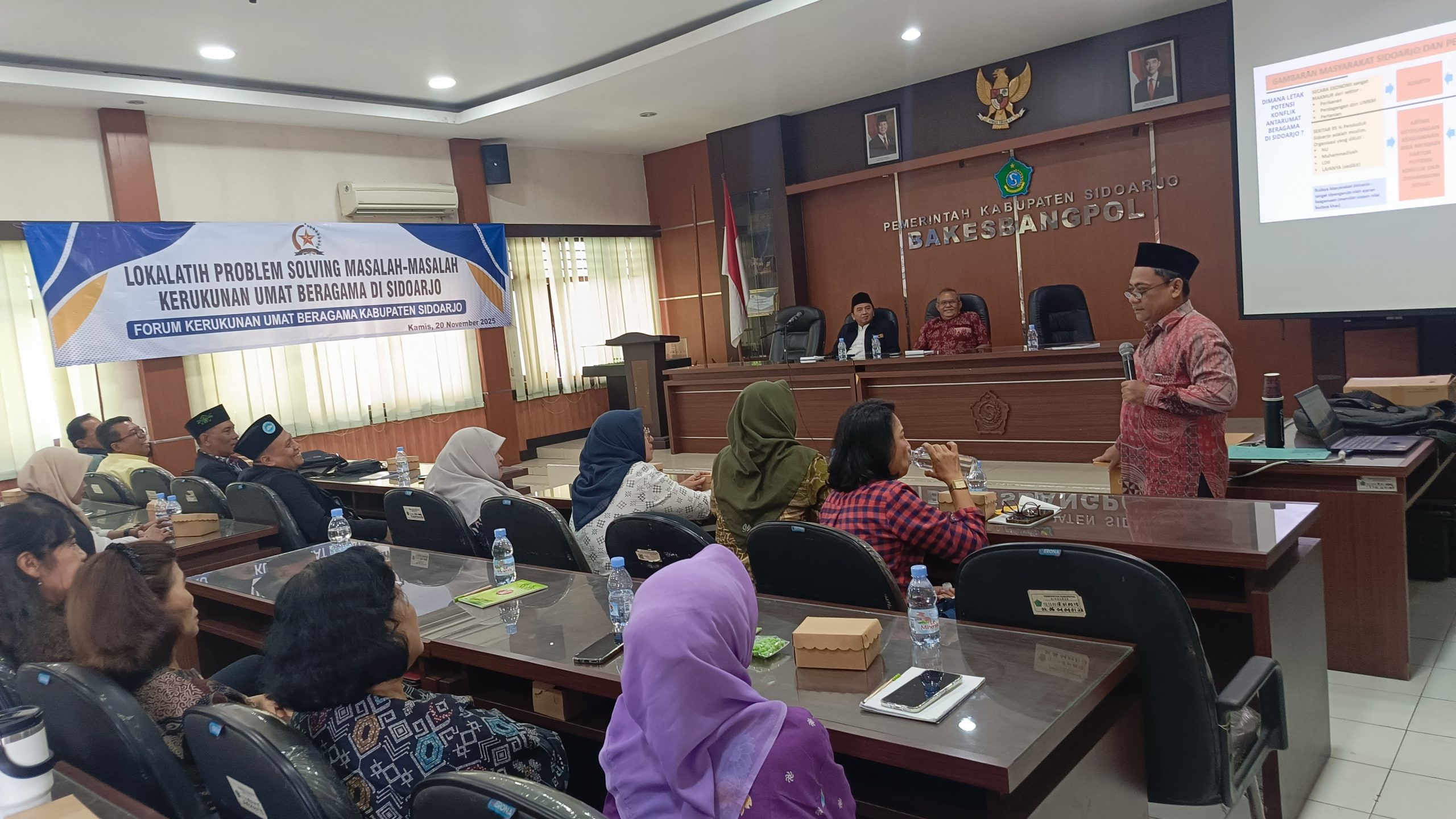 Zonajatim.com, Sidoarjo – Dalam upaya memperkuat fondasi kerukunan dan toleransi di tengah keberagaman bangsa, Forum Kerukunan Umat Beragama (FKUB) Sidoarjo menggelar kegiatan Lokalatih Problem Solving Masalah-masalah Kerukunan Umat Beragama Tahun 2025 di Kantor Bakesbang, Kamis (20/11/2025).