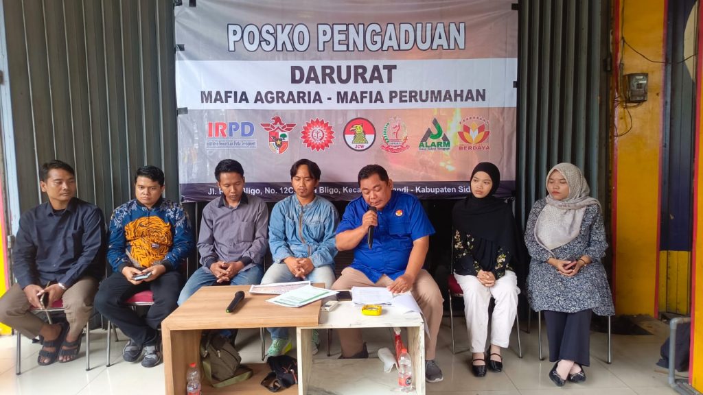 Zonajatim.com, Sidoarjo – Prihatin banyaknya keluhan dan pengaduan mafia tanah yang dialami masyarakat Sidoarjo, Gabungan sejumlah Lembaga Swadaya Masyarakat (LSM) dan lembaga bantuan hukum di Sidoarjo membuka Posko Pengaduan Darurat Mafia Agraria dan Mafia Perumahan. Posko tersebut berlokasi di Jalan Raya Bligo No.12 C, Desa Bligo, Kecamatan Candi, Kabupaten Sidoarjo, Jumat (23/1/2026).