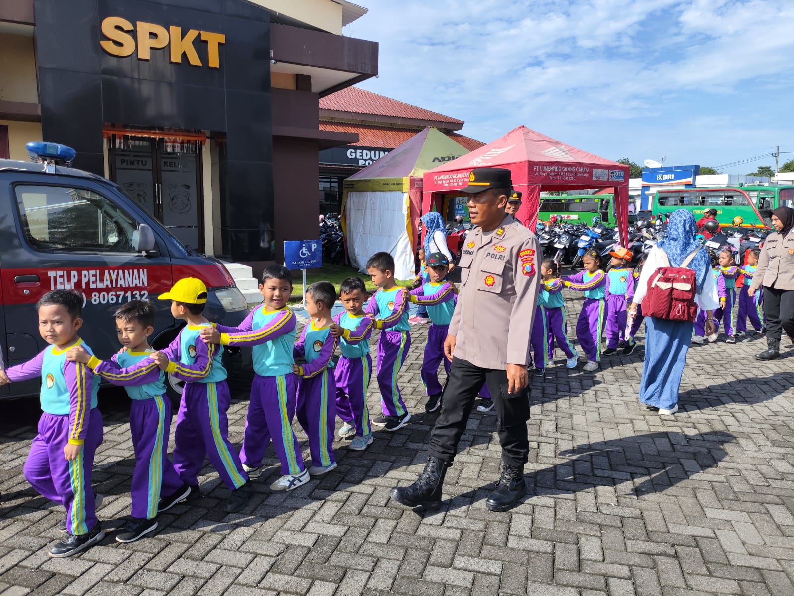 Sebanyak 70 siswa TK Dharma Wanita Persatuan Jabaran hadir bersama para guru pendamping untuk mengenal lebih dekat profesi kepolisian serta lingkungan kerja di Polresta Sidoarjo. Kegiatan ini menjadi sarana pembelajaran yang menyenangkan sekaligus edukatif bagi anak-anak usia dini.