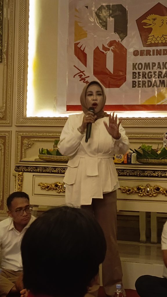 Ketua DPC Partai Gerindra Hj Mimik Idayana saat beri semangat untuk seluruh anggota dan sayap partai