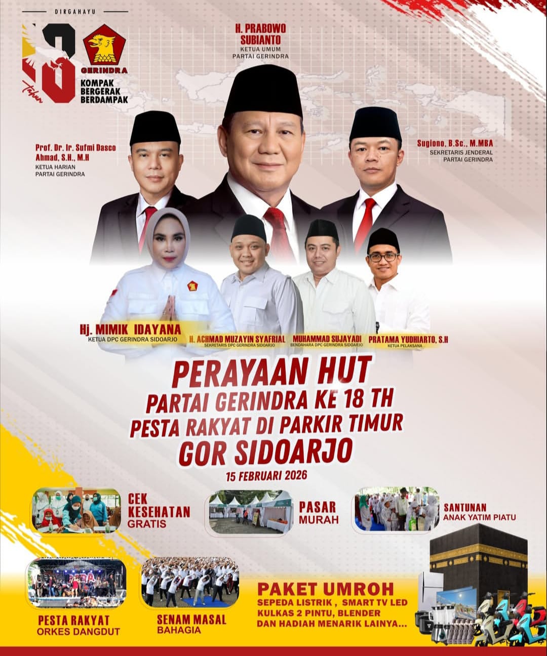 Peringatan HUT Partai Gerindra ke-18 sendiri telah dilaksanakan secara nasional pada 6 Februari 2026. Sementara itu, DPC Gerindra Sidoarjo memilih menghadirkan puncak perayaan dengan konsep pesta rakyat, sebagai wujud kecintaan dan kedekatan Partai Gerindra dengan masyarakat.