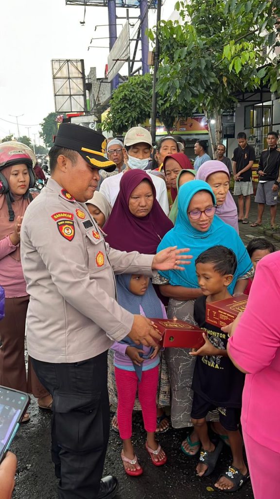 Kehadiran Bhayangkari dan anak-anak disabilitas turut menambah suasana haru dan kebersamaan. Semangat gotong royong serta kepedulian sosial terlihat jelas ketika seluruh pihak turun langsung menyapa dan menyerahkan nasi kotak kepada masyarakat dengan penuh kehangatan dan humanis.