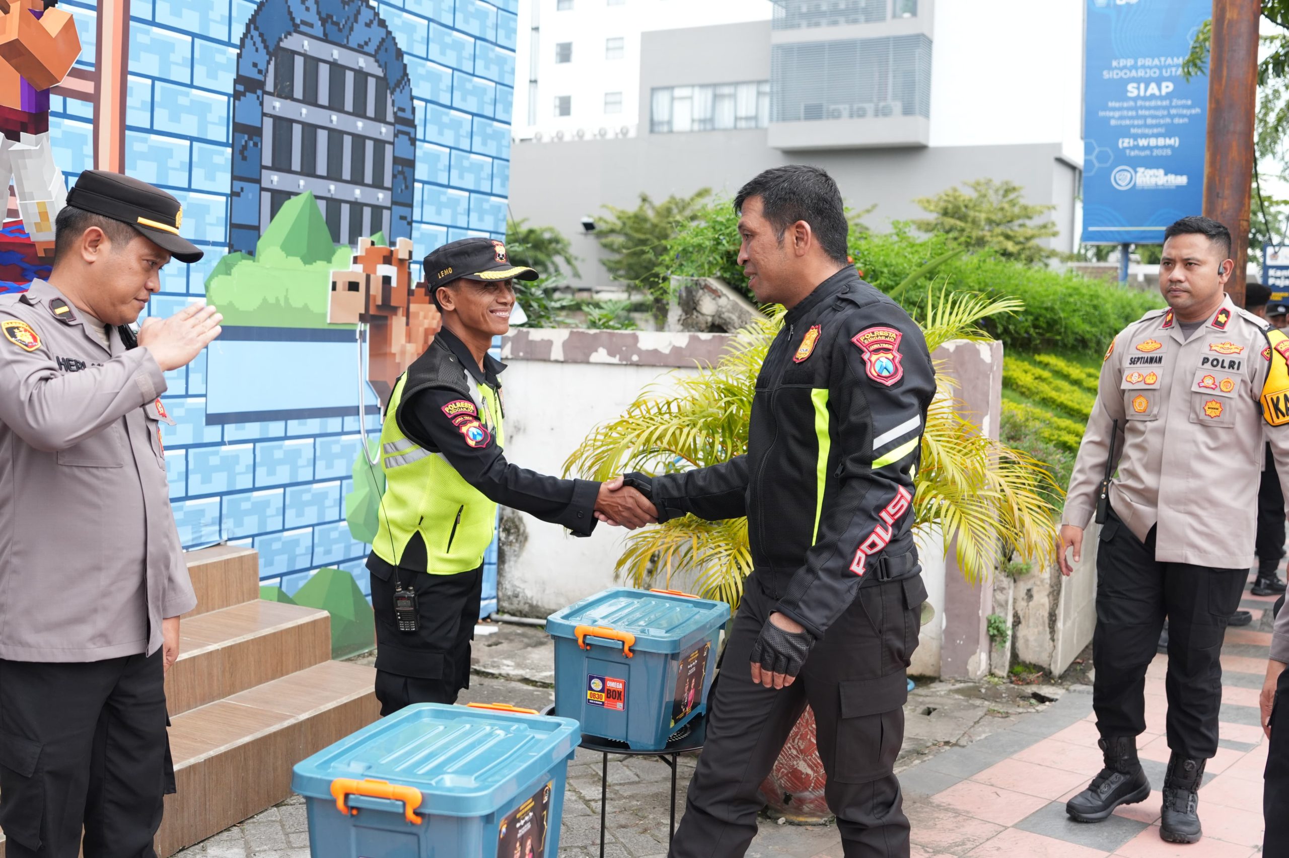 Dalam kesempatan tersebut, Kapolresta Sidoarjo meninjau langsung kesiapan personel serta sarana dan prasarana yang digunakan untuk mendukung pengamanan dan pelayanan kepada masyarakat.