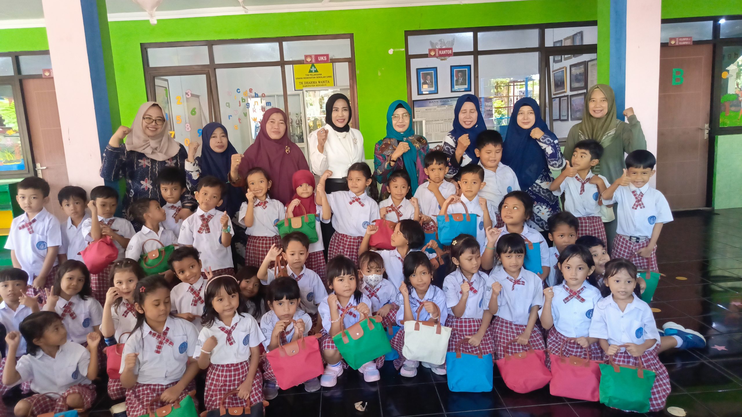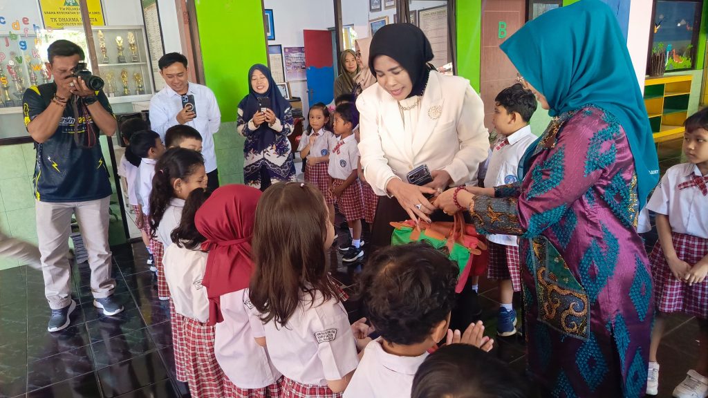 Dalam kunjungan tersebut, Wabup Mimik membagikan puluhan suvenir berisi kue, snack dan minuman susu instan kepada para siswa sebagai bentuk perhatian dan motivasi agar anak-anak semakin semangat dalam belajar. Suasana hangat dan penuh keceriaan tampak saat para siswa menerima bingkisan tersebut.
