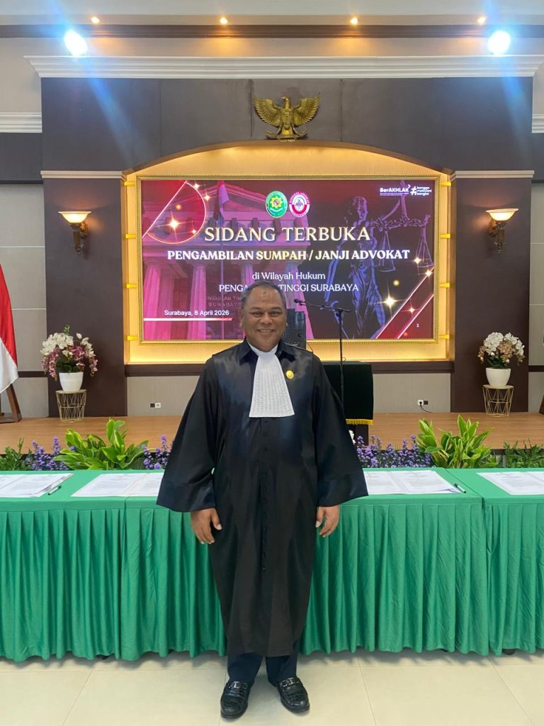 “Ini sebagai wadah pengabdian purna tugas saya dari DPR, awalnya mengawal aspirasi rakyat, kini berjuang untuk keadilan secara profesional,” kata Abah RM usai pengambilan sumpah advokat di Pengadilan Tinggi Surabaya, Rabu (8/4/2026) yang dimohonkan Dewan Pimpinan Daerah (DPD) Kongres Advokat Indonesia (KAI) Jatim.